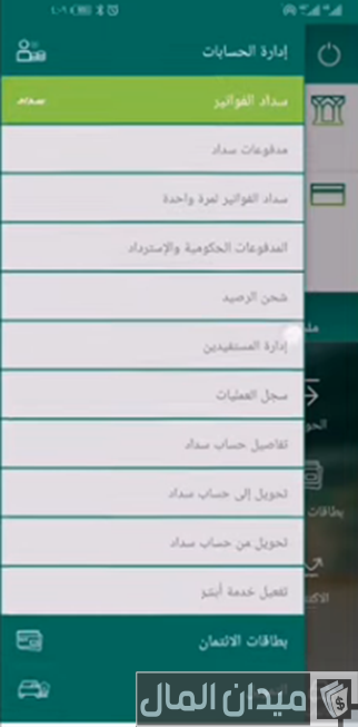 - من خلال القائمة الموجودة في يسار الشاشة اختر سداد الفواتير.