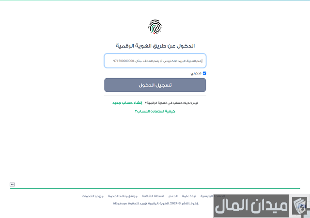 - “إنشاء حساب بالهوية الرقمية”.